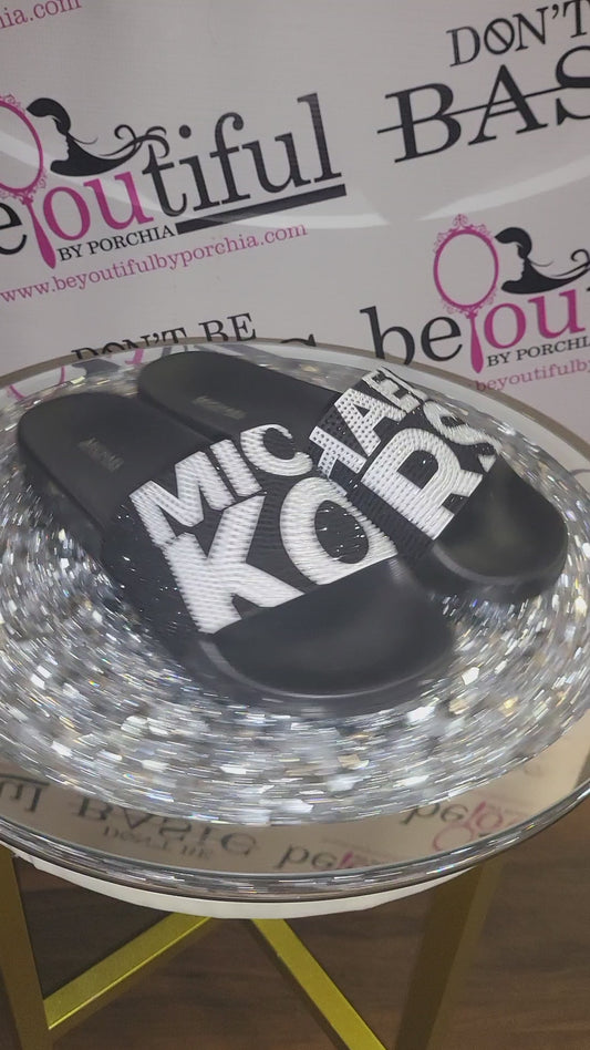 Michael Kors Black GlimoreLogo Rhinestone Slides 8w